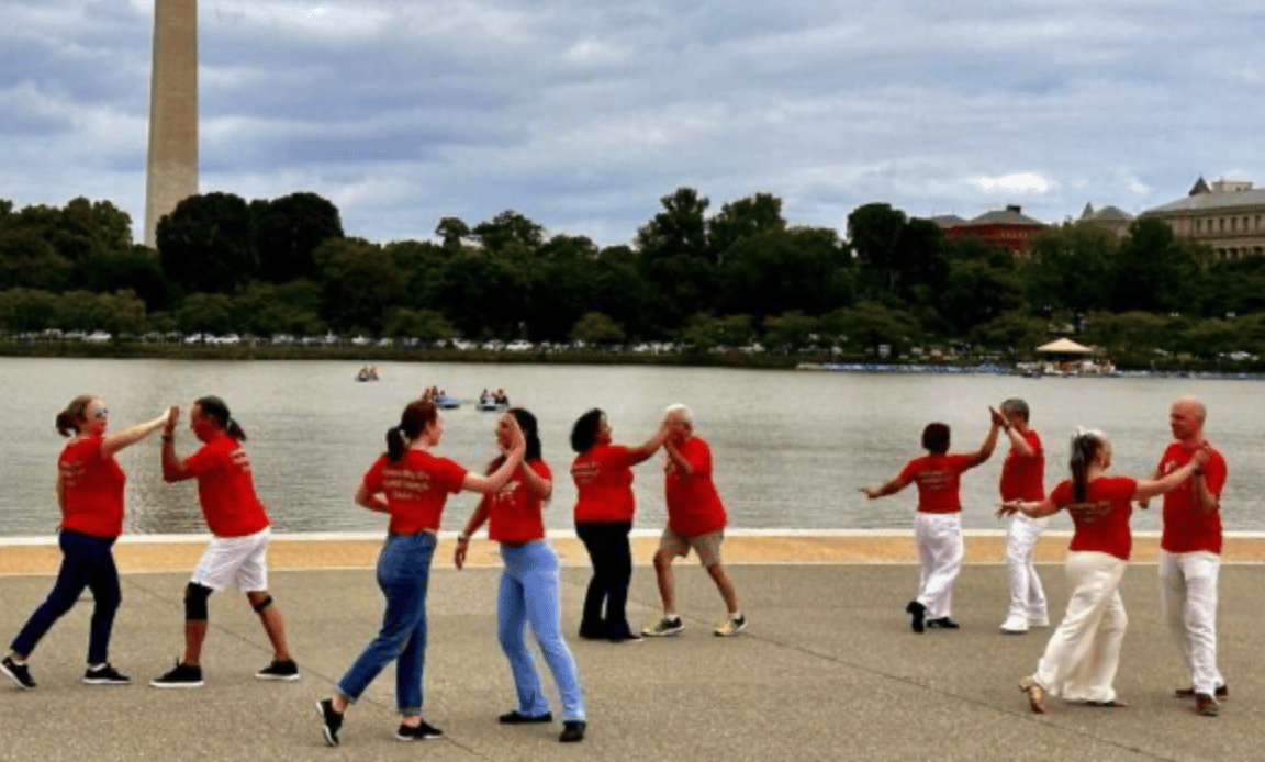 💃 Los turistas que acudieron al Jefferson Memorial de Washington, DC, fueron testigos de una sorpresa el sábado. La International Flash Mob of West Coast Swing infundió un vivo entusiasmo al Tidal Basin con una animada actuación de flash mob. "Hoy vamos a representar un flash mob", declaró Roger Plaut. Durante la última década, Roger y su esposa, Mané Rebelo-Plaut, han organizado meticulosamente este evento anual. La pareja, con una rica formación en ballet y 34 años de matrimonio, comparte un profundo amor por la danza. (Fuente: WTOP)