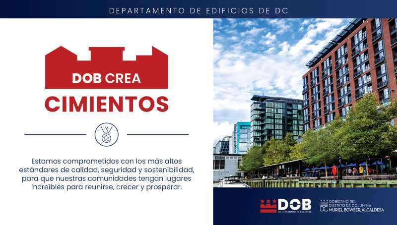 Desde el Departamento de Edificios de DC (DOB) queremos asegurarle que tenemos como prioridad tu seguridad y bienestar. Siendo su principal aliado en la construcción de una comunidad segura y ambientalmente sostenible, nuestra misión es proteger los espacios donde estamos viviendo, trabajando, disfrutando y creciendo.