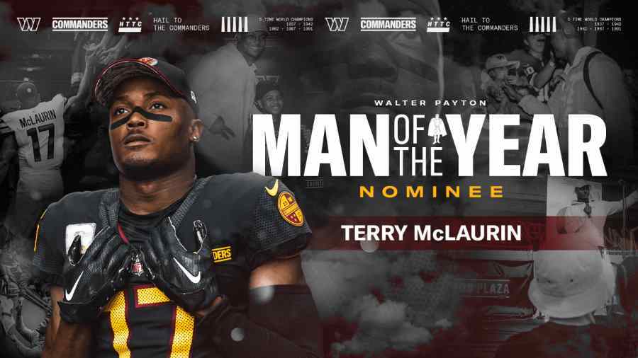 Terry McLaurin, jugador de Los Washington Commanders, fue nominado al premio “Hombre del Año” de la NFL 2023. Desde que fue reclutado en 2019, McLaurin ha aumentado su influencia en la comunidad del DMV y hasta ha creado una fundación que brinda apoyo educativo y social, asistencia de salud y tutoría a niños desamparados. (Fuente: Commanders).