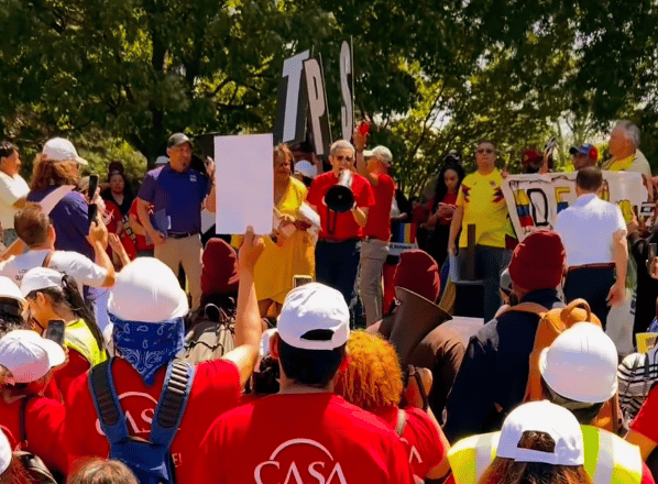 👷 La organización sin fines de lucro, CASA 4 All, informó que cientos de trabajadores esenciales faltaron al trabajo el pasado miércoles 1 de mayo para viajar a Washington y exigirle a la administración de Joe Biden los permisos de trabajo para migrantes. “Permisos de trabajo ahora” fue la consigna en el Día Internacional de los Trabajadores, que celebra el poder, fortaleza y coraje del trabajador inmigrante. La marcha fue desde el Capitolio hasta la Casa Blanca para entregar el mensaje. (Fuente: CASA)