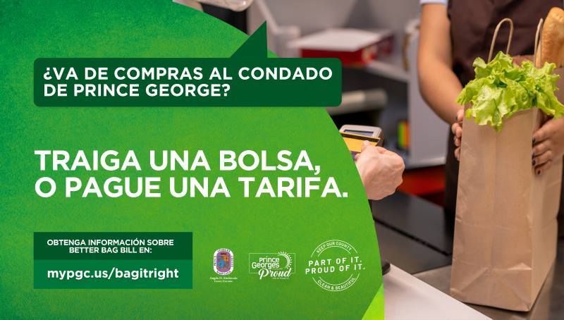 El condado de Prince George siempre fue líder en tecnología ecológica y adaptación y defensor del objetivo del estado de Maryland de un 85 % de desvío de desechos para el 2040. ¡El próximo paso para conseguir un condado de Prince George más ecológico y limpio es abandonará las bolsas de plásticocon Better Bag Bill! A partir del 1 de enero de 2024, el condado de Prince George prohíbe a todos los establecimientos minoristas dar bolsas plásticas a los compradores. Los compradores pueden pagar 10 centavos por bolsas de papel para llevar o comprar/llevar bolsas reutilizables.