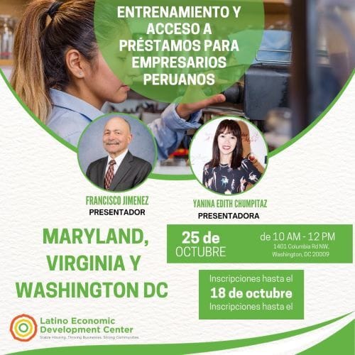 Hasta hoy están abiertas las inscripciones para este taller, dirigido a empresarios peruanos del DMV. Se hará el 25 de octubre de 10 a.m. a 12 p.m, en 1401 Columbia Rd NW, Washington D.C, 20009. Puedes registrarte aquí.