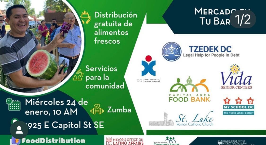 Este miércoles habrá una nueva jornada de distribución de alimentos gratuita en la Oficina para Asuntos Latinos, en nombre de la alcaldesa Muriel Bowser. Además, mientras esperas en la fila podrás disfrutar de una clase de zumba gratis para que te ejercites y diviertas. (Fuente: Oladcgov).