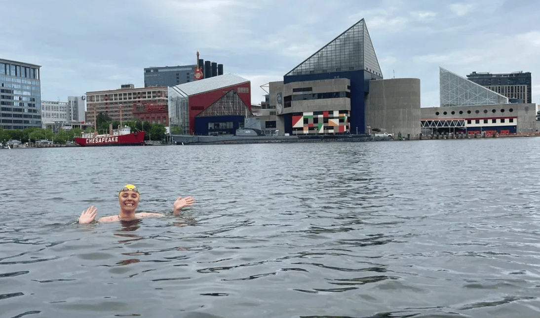 🌊 Katie Pumphrey, una notable artista de Baltimore y nadadora de ultramaratones en aguas abiertas, se prepara para una travesía a nado de 24 millas desde el puente de la bahía de Chesapeake hasta el puerto interior de Baltimore el martes. Conocida como la travesía a nado "De la bahía a Baltimore", esta travesía pone de relieve los importantes avances realizados para que el puerto de Baltimore vuelva a ser nadable. La travesía a nado de Pumphrey comenzará en el parque estatal de Sandy Point, cerca del puente de la bahía de Chesapeake, y terminará en el anfiteatro Harborplace del puerto interior del centro de Baltimore. (Fuente: WJLA)