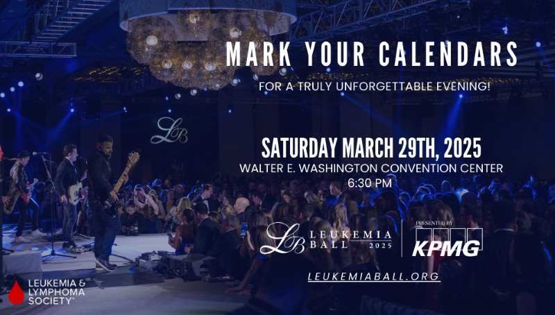 ¡Prepárese para una velada inolvidable! Le invitamos a reservar la fecha en su calendario para la prestigiosa gala de The Leukemia & Lymphoma Society, el Leukemia Ball. Acompáñenos, el sábado 29 de marzo en la 38ª Gala Nacional Anual, que se llevará a cabo en el Washington Convention Center y es presentada por KPMG. Este evento tiene como propósito transformar la vida de quienes enfrentan cánceres en la sangre.